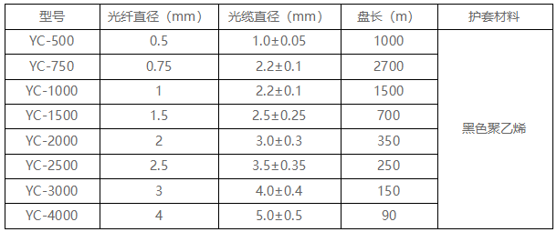 黑色PE護套,使光纖具有更好的抗壓、抗拉、抗磨擦、耐老化等性能,延長使用壽命;照明用系列光纜采用獨特的松護套結構,使其易于剝除;具有不同直徑的塑料光纖纜系列產品,形成大小不一的端光亮度效果 。